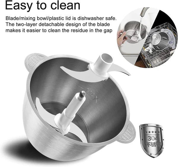 Con sus cuchillas de acero inoxidable y capacidad de un litro, esta picadora te permite procesar alimentos de manera uniforme y sin esfuerzo. Ideal para carne, vegetales y más, haciendo que cocinar sea más seguro y eficiente.